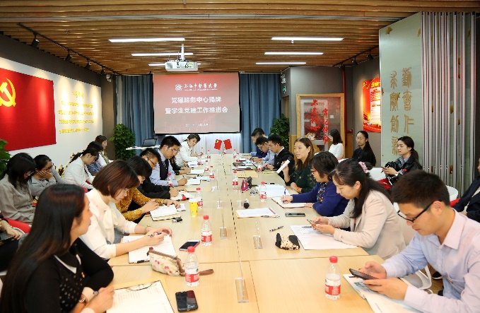 在beat365开展“不忘初心、牢记使命”主题教育期间,针对师生提出的,在党建工作中存在缺少活动场地、党员仪式感教育力度不足、学生党建质量需提升等问题,学校党委即知即改,立行立改。10月18日,beat365举行党建服务中心揭牌仪式暨学生党建工作推进会,上海市教卫工作党委党建服务中心曹鹏,我校党委书记曹锡康,校党委副书记、副校长朱惠蓉,学校党委各职能部门、校团委、二级学院、研究生培养单位相关负责人,以及学生党支部书记、学生党员代表参会。