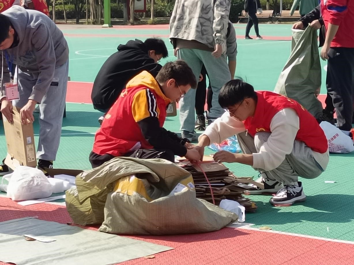 活动中,志愿者们将同学捐赠的废弃纸箱和塑料水瓶收集后卖给废品回收处,并将此次活动所得用于后期开展关爱留守儿童相关的公益活动,将爱心传递下去。
