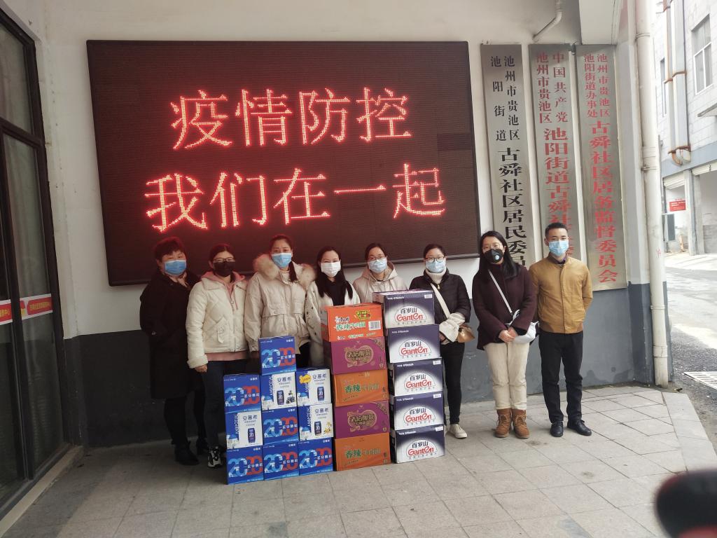3月30日,3044am永利集团3044noc党委副书记刘昉、教工支部书记汪颂晖、学生第一支部书记张璐、学生第二支部书记汪雨一行,赴结对共建社区贵池区池阳街道古舜社区,慰问防控一线工作人员。