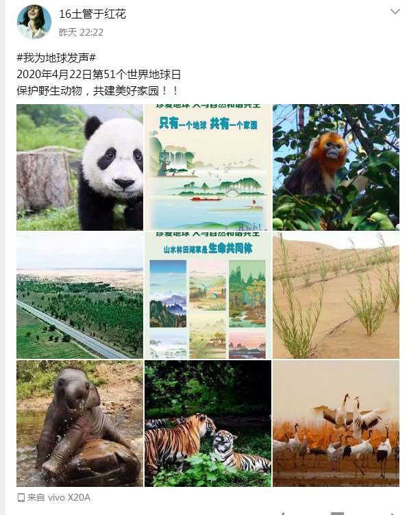 目前,新冠疫情肆虐全球,今年的世界地球日,格外特殊,更值得关注。活动过程中,首先我院全体师生党员线上集中学习观看了《同心抗“疫” 拒绝舌尖上的野生动物》教育视频,严峻形势下,大家愈发明白保护野生动物的重要意义;随后全体师生党员通过微信公众号,云畅游作为全国科普教育基地的中国地质大学逸夫博物馆,足不出户探索地球科学的奥秘;最后大家纷纷在QQ、微信朋友圈为地球发声,号召身边的朋友关爱地球,携手共建美好家园,形成人人关心生态、人人爱护自然的良好社会风气。