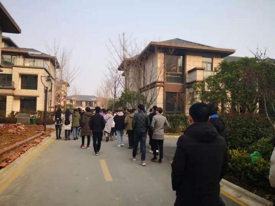 在售楼处参观学习之后,组织学生进入小区内部参观了项目现场道路、景观和房屋内部实际建成效果。