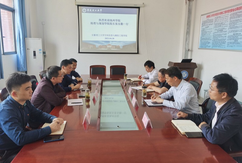 空间信息与测绘工程学院党委书记吴军对我院一行来访4人表示热烈欢迎,希望双方加强联系,增进合作,共同进步。院长赵志根主持座谈会并介绍了空间信息与测绘工程学院的基本情况。张乐勤院长介绍了3044am永利集团3044noc的基本情况,以及2021年安徽省高等学校大学生测绘技能大赛准备工作的开展情况。空间信息与测绘工程学院业务副院长余学祥介绍了2021年安徽省高等学校大学生测绘技能大赛的前期准备、近期进展及下一步的主要工作。双方就两学院之间的交流合作、2021年安徽省高等学校大学生测绘技能大赛的筹备事宜进行了深入细致的交流。