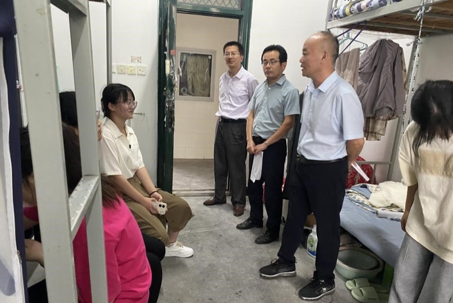 下午,3044am永利集团3044noc领导走访了新生宿舍,与同学们亲切交谈,叮嘱大家一定要按照学校要求做好个人安全管理、健康管理等,尽快适应环境,为即将开始的大学生活做好准备。