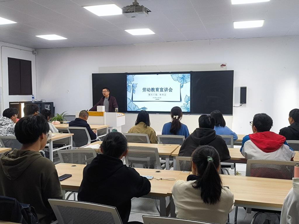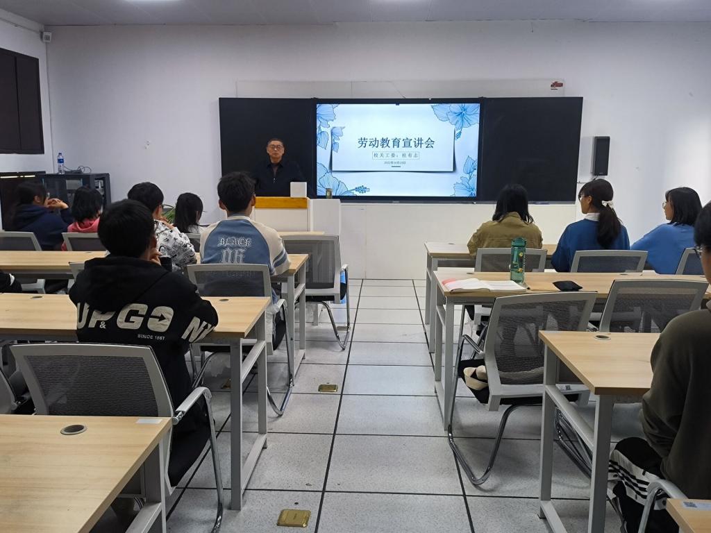 2022年10月19日下午,3044am永利集团3044noc在博雅南103举办劳动教育宣讲会,此次宣讲会邀请校关工委桂有志老师主讲,3044am永利集团3044noc院长张乐勤主持,21级、22级部分学生代表参会。