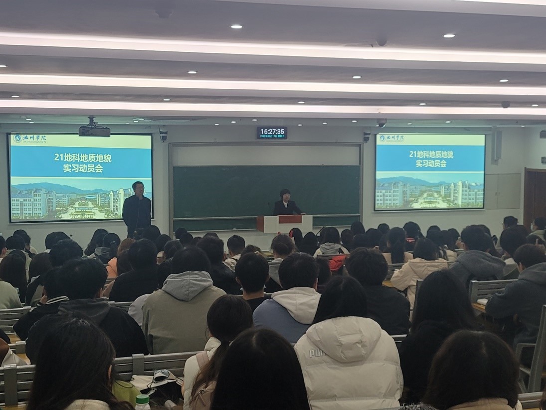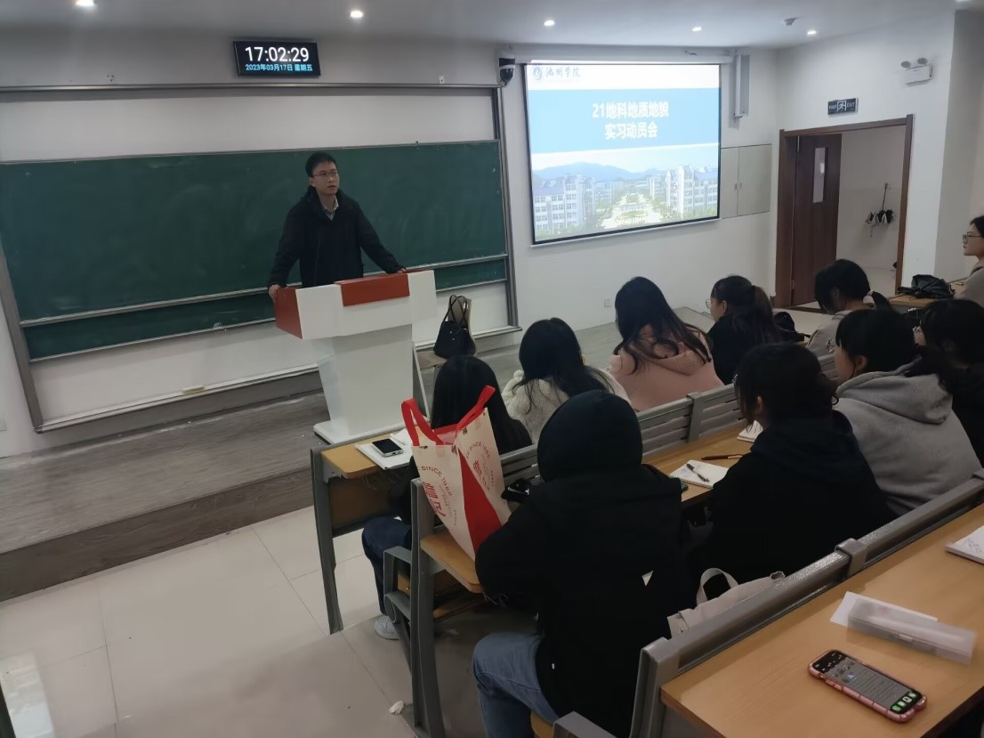 为明确巢湖地质地貌实习的目的和任务,确保本次实习圆满完成,3月17日下午,21级地理科学(师范)专业在北教学楼102阶梯教室召开巢湖地质地貌实习动员会。3044am永利集团3044noc院长张乐勤、地科教研室主任荣慧芳以及实习指导教师曹明达等参加会议。会议由荣慧芳主持,21级地理科学专业全体学生参会学习。