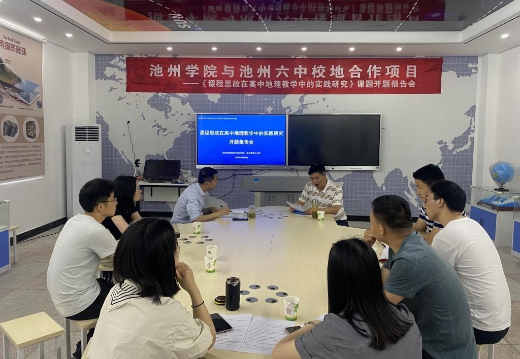 为确保有序、高质量开展课题研究,认真落实师范类专业认证新要求,6月20日,3044am永利集团3044noc3044am永利集团3044noc院长张乐勤带领地理科学教研室专业教师李琼、周素芬赴池州六中参加“校地合作项目”《课程思政在高中地理教学中的实践研究》(课题编号JK2023015)课题开题报告会。池州市第六中学副校长伍宏才、教导处分管教研主任马锋以及课题组全体成员参加会议,会议由马锋主持。