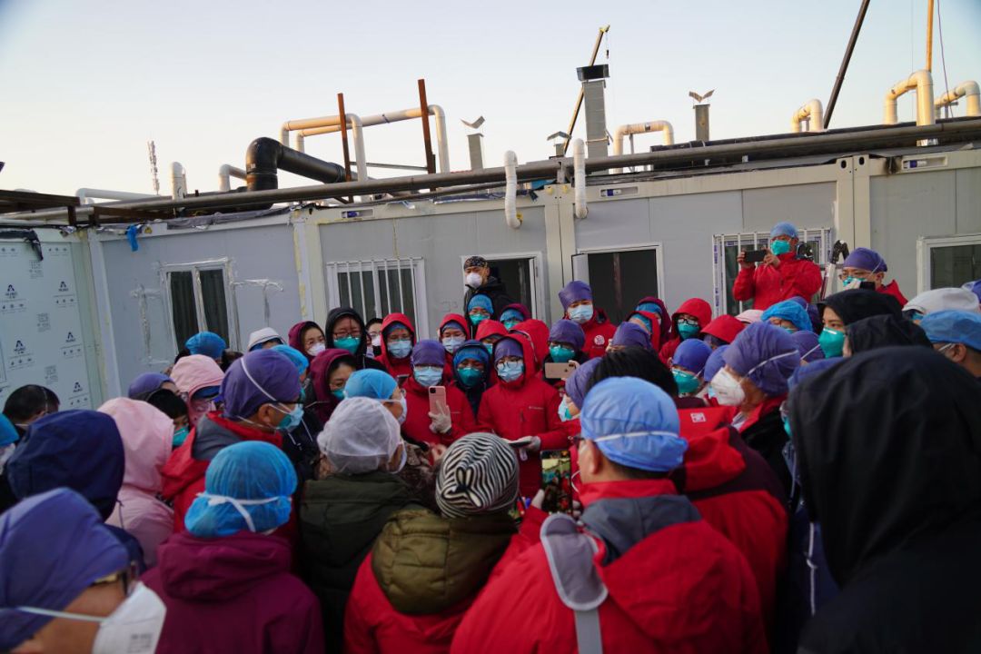 第四批国家中医医疗队(上海)将要承接的病区尚未完工,到处可见忙碌的工人,不得不佩服“中国速度”,待他们熟悉了病房走出,原本坑洼的道路已被铺得平平整整。回到驻地接近21时,来到武汉的第一个24小时已经让人感受到了“战地”的紧张,在等待进驻雷神山、接收病人指令的时间里,队员们将加强院感培训,平安出征和平安归来,需要每个人的万分小心。