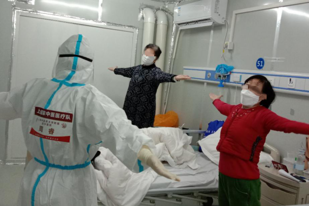 雷神山医护人员指导患者锻炼“抗疫强身功”