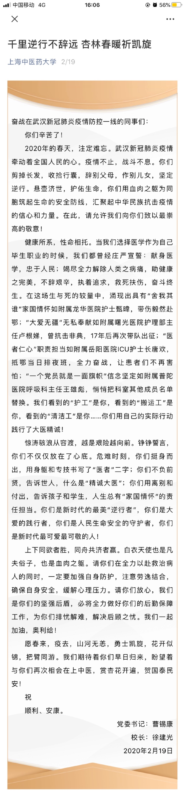 千里逆行不辞远 杏林春暖祈凯旋