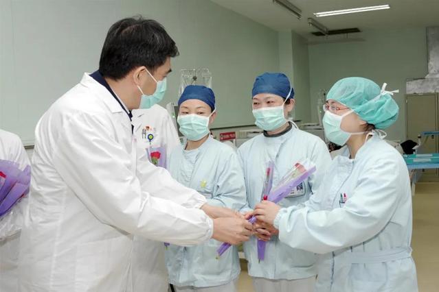上海市教卫工作党委副书记、市教育工会主席滕建勇慰问坚守在医院抗疫一线的女性医务工作者
