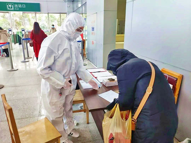 中药学院2019级中药学专业学生吴悦协助返沪人员登记工作