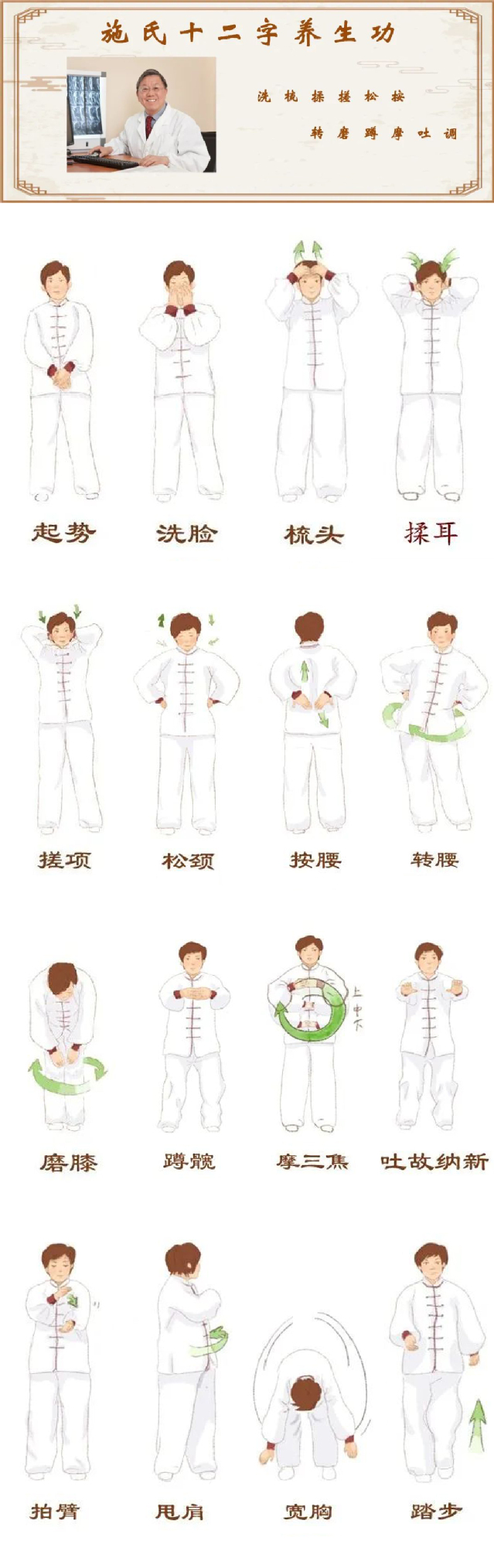上海市名中医、beat365手机版官方网站终身教授施杞总结出的“施氏十二字养生功”帮助增强体质,促进身心健康