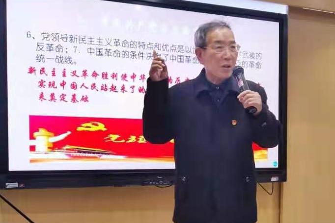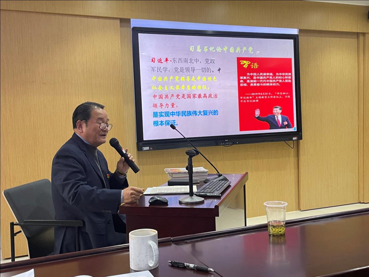 随后,退休局级干部党支部书记张建中为全体党员作了题为“学党史悟思想,坚定不移跟党走——谈谈学习党史的体会”的党课报告。张建中从为什么要学习中国共产党的历史谈起,阐述了学习党史的重要性、必要性。他指出,党员们要用党的实践创造和历史经验启迪智慧、砥砺品格,学习党史、传承党史、发扬党史。