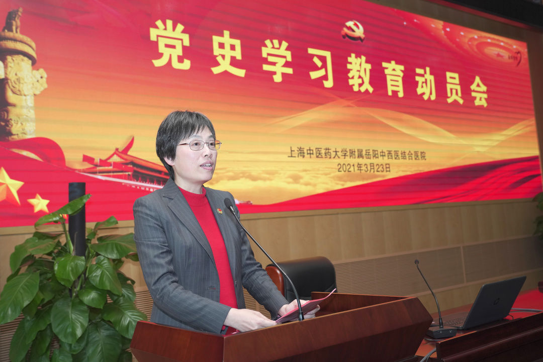 为深入学习贯彻习近平总书记在党史学习教育动员大会上的重要讲话精神和党中央《关于在全党开展党史学习教育的通知》精神,落实市委、市教卫工作党委、beat365手机版官方网站党委的有关要求和部署,在beat365手机版官方网站党委的领导下,3月23日下午,附属岳阳中西医结合医院召开党史学习教育动员会。医院党政领导班子、职能科室主任、临床医技科主任、研究所所长、教研室主任、研究室主任、首席专家、护士长、党支部书记和支部委员、党务条线工作人员及党外人士代表参加会议。会议由医院党委副书记、纪委书记赵庆主持。