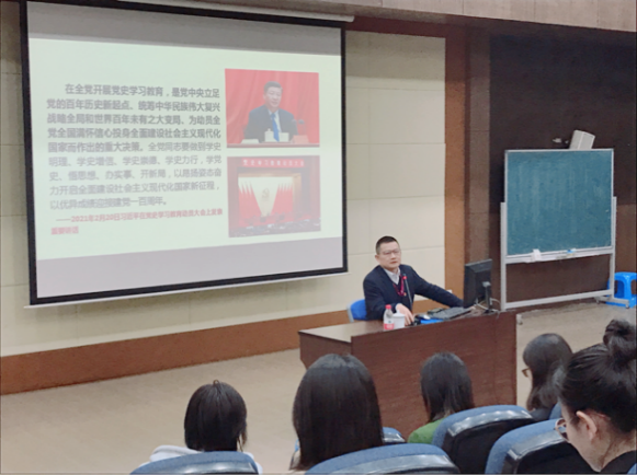动员会后,陈荣武为师生作《中国共产党的光辉历程与基本经验》主题党课报告。陈荣武从历史是最好的教科书、百年大党的光辉历程、基本经验与重要启示三个方面深入浅出地介绍中国共产党光辉的发展历程以及经验启示,明确了我们当下面临的历史方位和政治事件,强调了学党史的重要意义,夯实了学党史的理论基础。