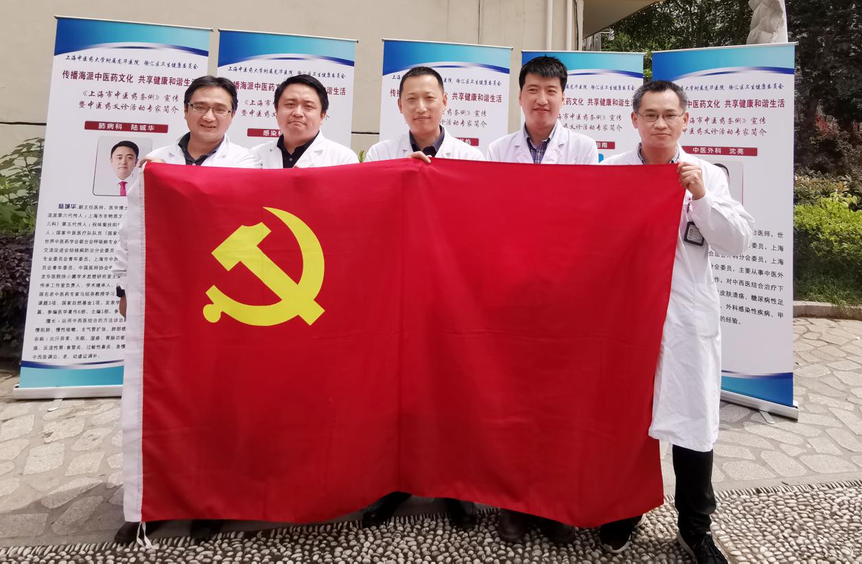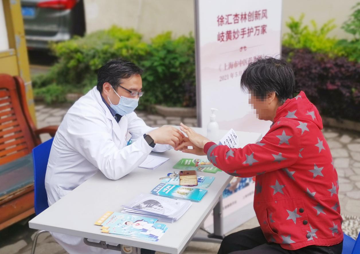 扎实推进党史学习教育,切实为群众办实事,4月28日上午,附属龙华医院与徐汇区卫生健康委员会联合开展“传播海派中医药文化,共享和谐健康生活”《上海市中医药条例》宣传暨中医药义诊活动,活动在徐汇区宛南一村居民健身广场举办。