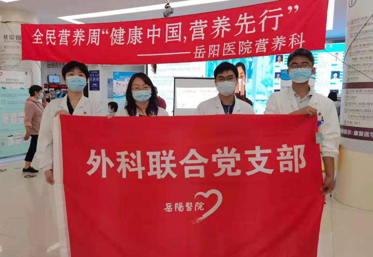 为深入推进党史学习教育,广泛开展“我为群众办实事”实践活动,进一步提升人民群众营养知识水平和健康素养。5月19日,附属岳阳中西医结合医院外科联合党支部在“全民营养周”来临之际举办了“合理膳食 营养惠万家”科普讲座及义诊咨询活动。