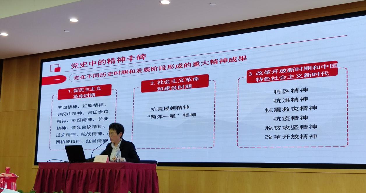郑莉作题为《学党史 悟思想 聚合力 谋发展 为医院高质量发展而努力》主题报告,回顾了中国共产党在一百年的非凡奋斗历程中形成的“井冈山精神”“长征精神”“改革开放精神”“焦裕禄精神”等精神谱系,带领大家从党史中学精神,从精神谱系中悟党史,坚定了要把传承和弘扬党的精神谱系贯通于学史明理、学史增信、学史崇德、学史力行之中的决心。报告阐述医院建院以来的发展历程、规划及全院职工共同奋斗所取得的成绩,将党史学习和医院发展史相结合,也对医院民主党派基本情况进行了分析,对新修订的《中国共产党统一战线工作条例》的特点和亮点进行了解读,号召医院各民主党派成员们聚合力、谋发展,为医院未来的高质量发展而努力。