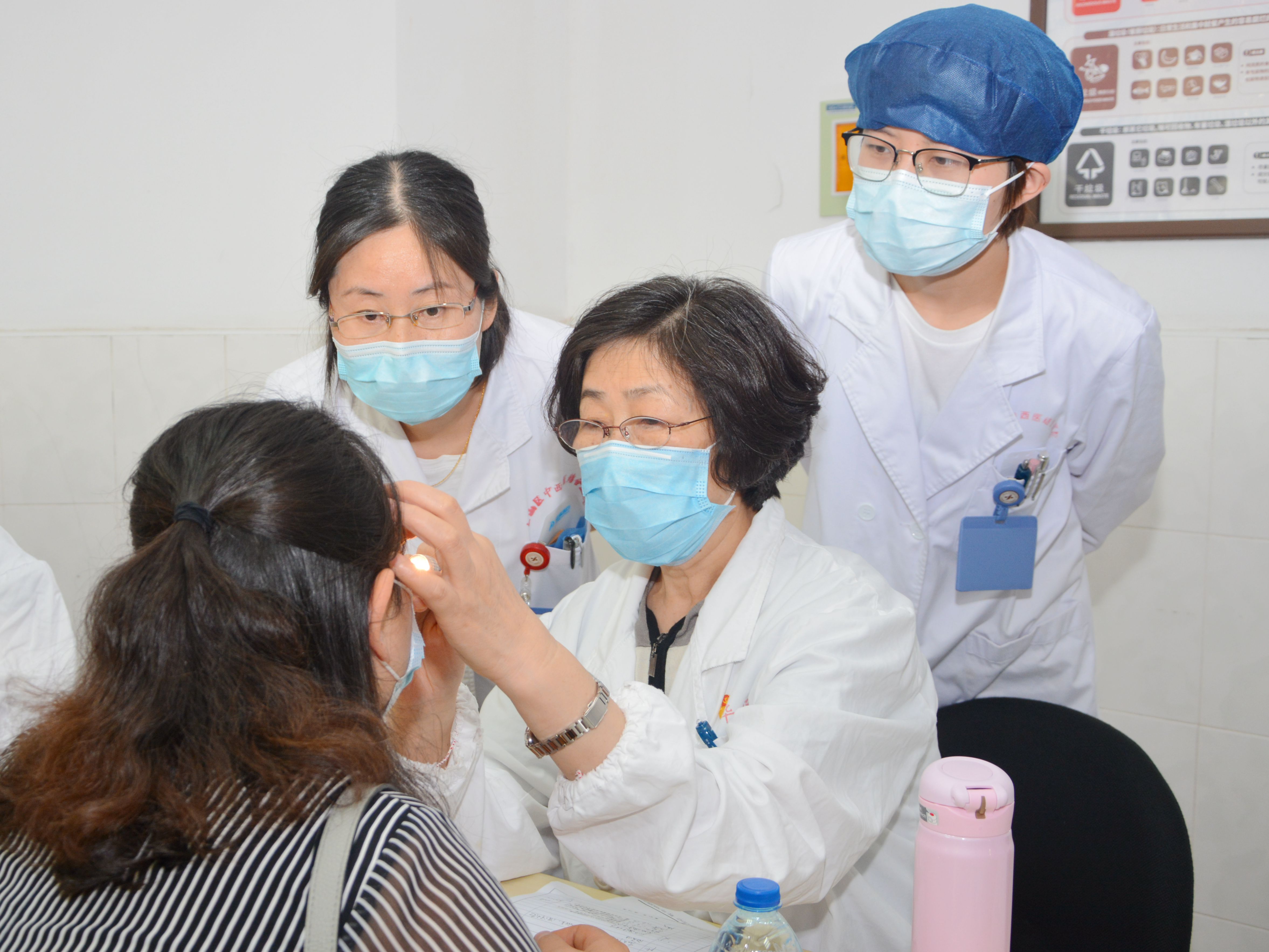 赠书仪式后,党员专家团队开始了服务社会百姓活动,向当地病患百姓提供医疗和护理咨询服务。龙华医院肿瘤科徐振晔教授、心病科顾仁樾教授、骨伤科赵光复教授、眼科李明飞主任医师、脾胃病科郑嘉岗主任医师等医疗专家团队9位党员,为前来咨询的群众答疑解惑;护理团队的3位专家为百姓们提供测量血压、免费监测血糖等服务;志愿者团队为群众发放健康保健处方、分科引导、指导合理锻炼及膳食等服务。整整2个小时的义诊服务,共接待群众130多名。专家团队中已进入耄耋之年的顾仁樾教授和赵光复教授,不顾自己年事已高,始终坚守岗位,为每一位咨询者耐心解答、看片读片。