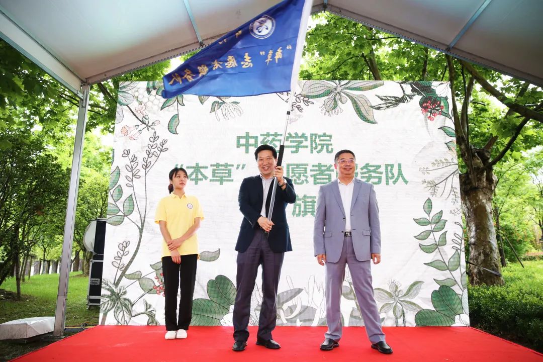 beat365手机版官方网站中药学院成立了百草园师生志愿者服务队,支持与维护好百草园的发展。大学生讲解员今后将为本校师生和市民提供定期讲解服务。张江集团董事张爱平为志愿者服务队授旗。