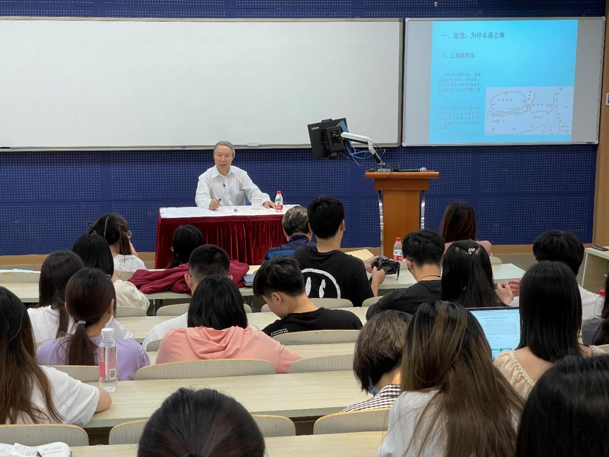 习近平总书记强调:“学史明理、学史增信、学史崇德、学史力行”。中国共产党从上海诞生,从上海出征,从上海走向全国执政,苏智良对上海的建党往事娓娓道来,语言生动、史料丰富、逻辑清晰,千百个上海文化地标点燃了在座师生的红色热情,引发了广泛讨论,在场师生意犹未尽,纷纷表示在今后的学习生活中加入保护、弘扬上海红色文化的行列,沿着革命前辈的足迹继续前行,为中华民族伟大复兴贡献自己的力量,把红色江山世世代代传下去。学术报告由马克思主义学院党总支书记陈秋生主持,马克思主义学院院长王芳作报告总结。