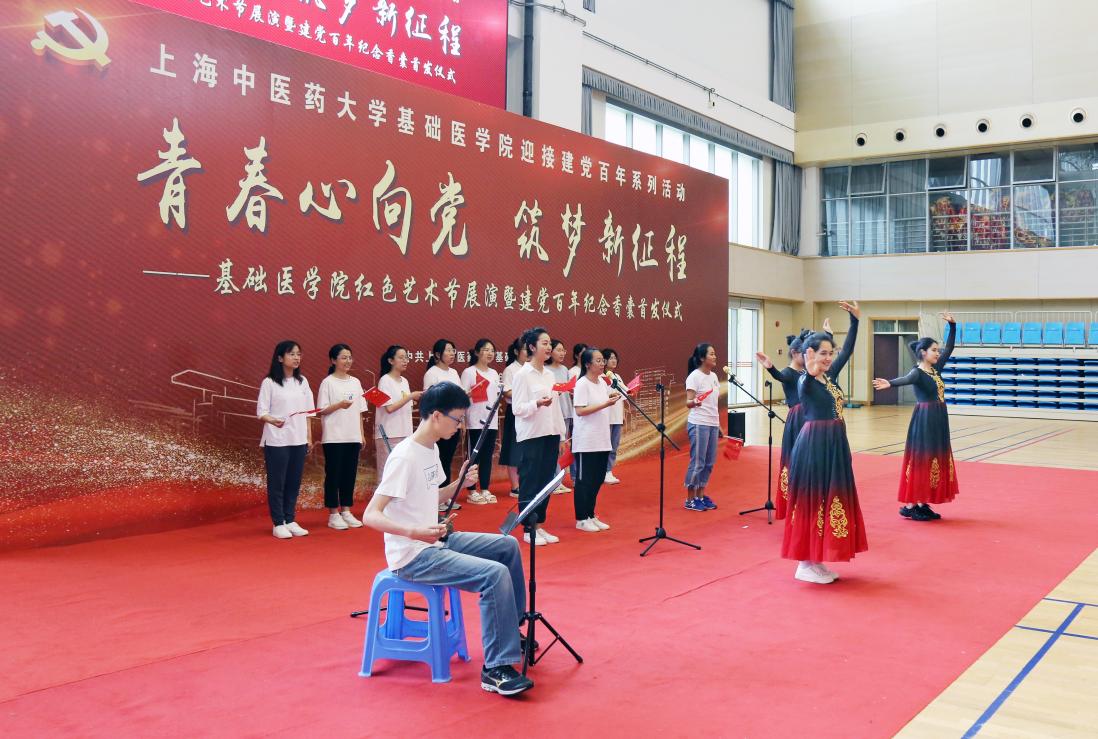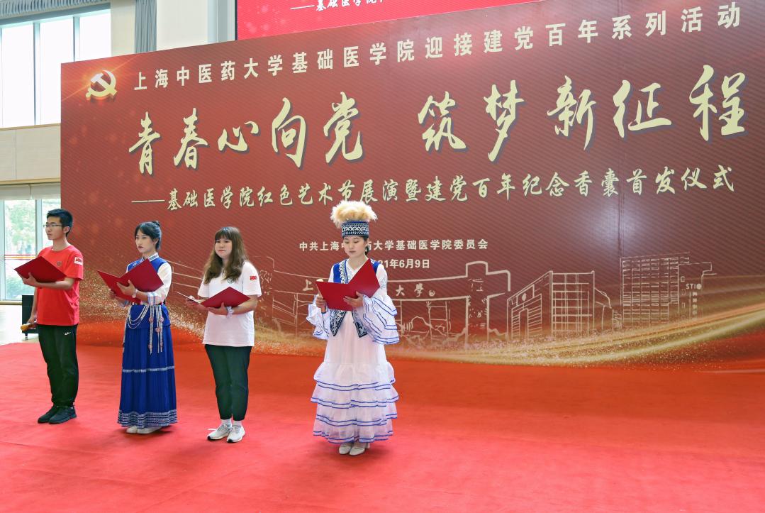 仲夏时节,绿树浓荫,草木深长。6月9日,“青春心向党 筑梦新征程”基础医学院红色艺术节展演暨建党百年纪念香囊首发仪式在beat365体育馆举行。基础医学院全体毕业生党员、少数民族学生、港澳台学生和部分师生代表,共百余人参加。基础医学院学生艾力亚尔·吐尔逊和陆昕月主持。