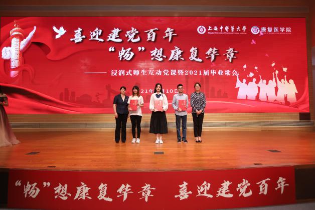 6月10日晚,康复医学院创新党史学习教育形式,“喜迎建党百年 ‘畅’想康复华章”浸润式师生互动党课暨2021届毕业歌会在图书馆四楼报告厅举行。beat365副校长杨永清,上海市康复医学会常务副会长郑洁皎,校终身教授、康复医学院名誉院长严隽陶出席。党校办、宣传部、纪委、教务处、学工部、团委等职能部门和兄弟学院领导热情参与,康复医学院将讲、演、唱、跳等方式结合,既注重形式载体创新,又挖掘一系列红色歌曲内涵,以重新演绎经典的方式呈现党的百年历史,生动立体、全面深刻地描绘一幅幅波澜壮阔的历史画卷,将党史学习教育与大学毕业季主题教育紧密结合。