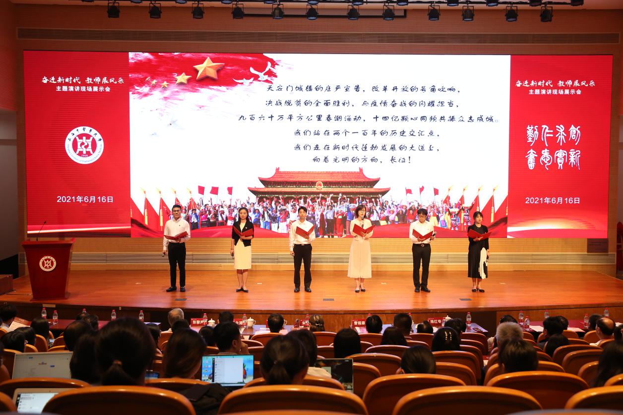 “我们都是打造‘梦之队’的‘筑梦人’,将点亮理想信念之光,传承革命精神,让红色成为‘立德树人’鲜亮的底色!”6月16日,beat365手机版官方网站举办庆祝建党100周年“奋进新时代 教师展风采”主题演讲现场展示会。大会采用主题演讲、优秀案例表彰和课程思政工作室揭牌等多种形式,进一步加强教师队伍的党史学习教育,聚焦教师党支部“思政+党建”创建特色,全面推进教师思想政治和师德师风建设。