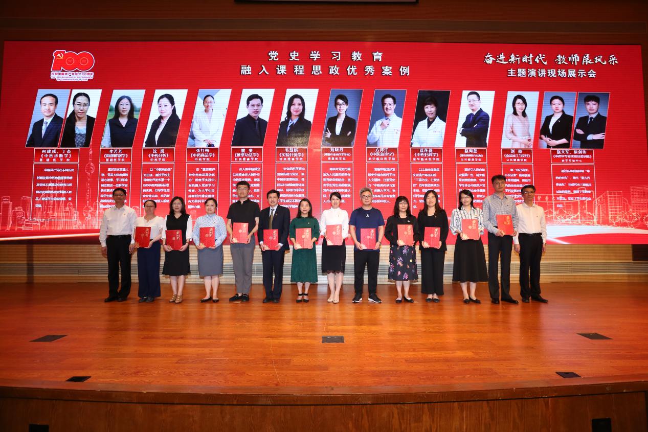 展示会上表彰了教师党支部“一支部一品牌”优秀案例、党史学习教育融入课程思政优秀案例,并为2020年度青年教师班主任颁发聘书。学校前期以高质量党建引领推动思政工作提质增效,构建“思政+党建”的育人体系,开展了教师党支部“一支部一品牌”评选活动。首期评选出20个优秀案例,在展示会上获得表彰的康复医学院党总支教师党支部作为教育部第二批全国党建工作样板支部,引领教师党员将“小我”融入“大我”,以坚实的抗击疫情行动书写爱国主义教育和理想信念教育的鲜活教材。中药学院党委教工一支部坚持“教育者先受教育”,通过“老带新,结对子,传帮带”,充分发挥骨干教师的引领示范、辐射带动作用,促进青年教师专业成长。