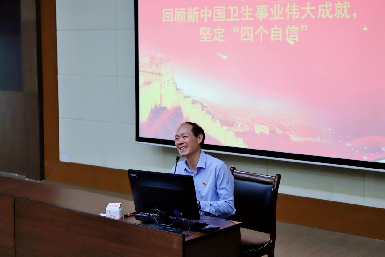 公共健康学院“营卫”导师团团长赵海磊,通过梳理百年党史与公共卫生有关的重大历史事件,增强毕业生爱党、爱公卫的意识,坚定为公共卫生事业发展做贡献的信心,从而进一步坚定学生的理想信念,厚植家国情怀,感悟医者仁心,践行时代担当。