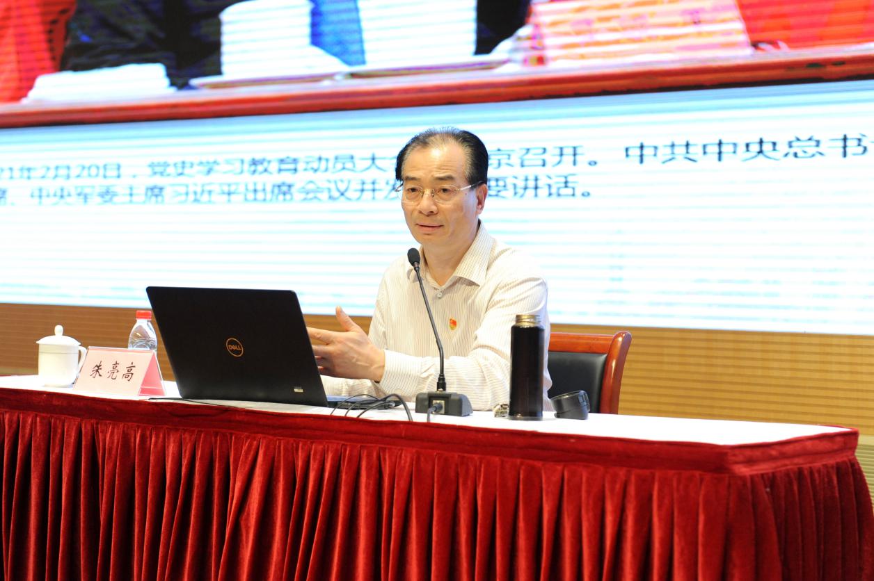 朱亮高首先带领与会人员学习了习近平总书记关于党的历史的重要论述和党史学习教育的重点内容,并从矢志践行初心使命的思想逻辑、历史逻辑、实践逻辑和增强践行初心使命的实际本领四个维度作深入解读。他指出,矢志践行初心使命的思想逻辑聚焦于“为人民谋幸福”“为民族谋复兴”“为世界谋大同”,中国共产党是为中国人民谋幸福的政党,也是为人类进步事业而奋斗的政党。矢志践行初心使命的历史逻辑在于,我们党的奋斗目标紧扣时代,引领中国前进方向,自1921年成立至1949年为民族独立和人民解放两大任务而努力奋斗,新中国成立后围绕国家富强、人民幸福而砥砺奋进。回望百年历史,让我们感受到矢志践行初心使命的实践逻辑,这就是坚持旗帜鲜明讲政治,重视思想建党、理论强党,坚持以人民为中心的发展思想,善于总结经验、把握规律,赓续中国共产党人的精神血脉。他强调,增强践行初心使命的实际本领,要始终坚持问题导向,增强执政本领;始终抓好第一要务,增强发展本领;始终树牢忧患意识,增强斗争本领;始终坚持学用哲学,增强看家本领。