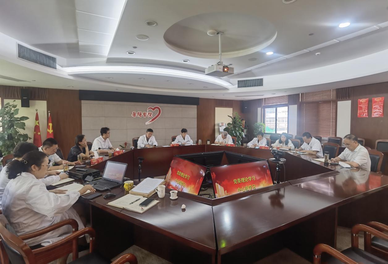 9月27日下午,附属岳阳中西医结合医院召开党委理论学习中心组党史学习教育专题学习会,会议围绕习近平总书记在中央党校(国家行政学院)中青年干部培训班开班式上发表的重要讲话,同党史学习教育、中共beat365手机版官方网站第八届委员会第八次全体(扩大)会议暨秋季学期工作会议精神学习、落实“十四五”规划重点任务紧密结合,进行深入研讨交流。会议由岳阳中西医结合医院党委书记郑莉主持。