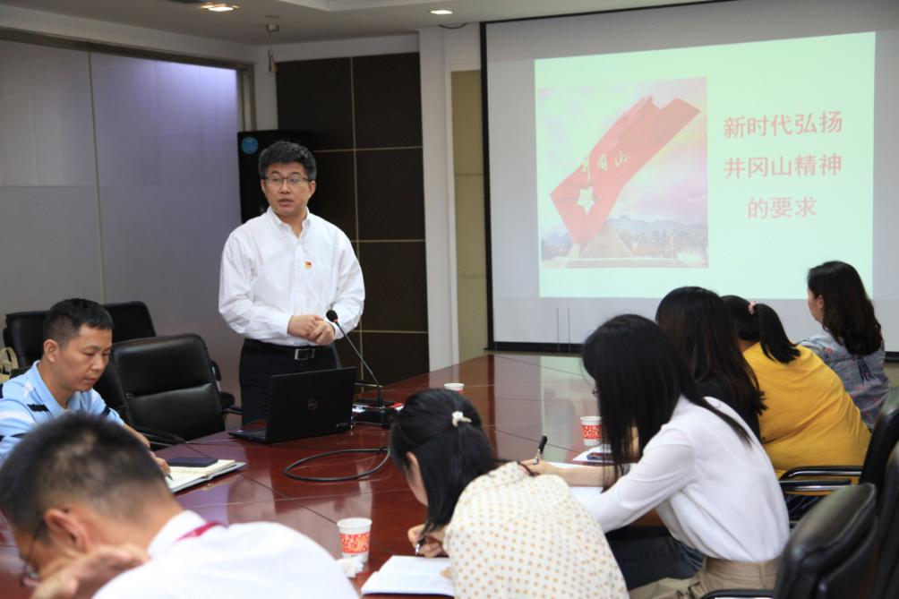 为促进基层党组织更好发展,从红色党史中汲取前进力量,10月13日,beat365副校长王拥军在行政中心312会议室为机关党委后勤党总支的全体党员开展以“新时代弘扬井冈山精神的要求”为主题的党史学习教育专题党课。后勤党总支副书记周强峰主持会议。