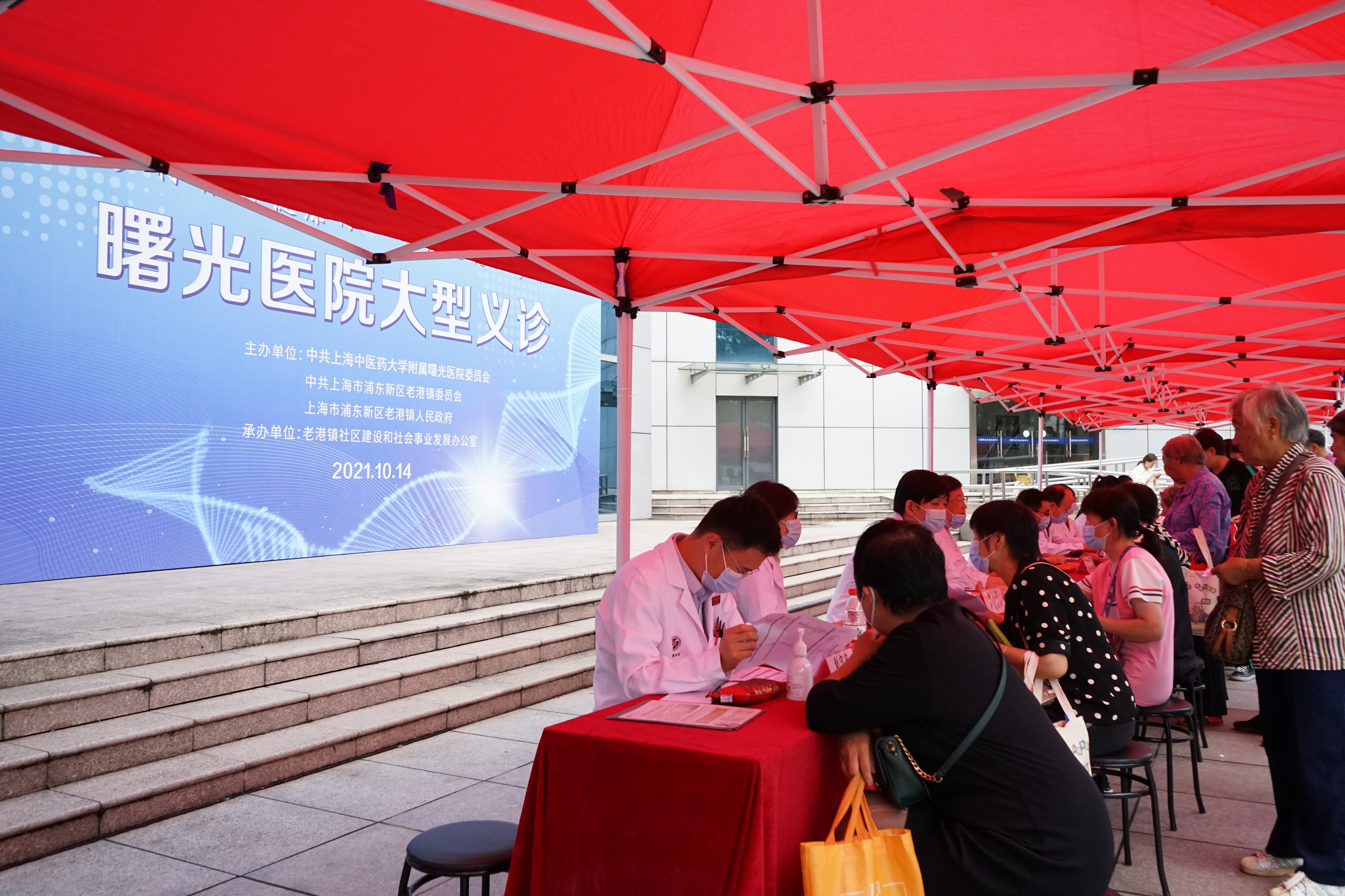 2021年重阳节,也是第33个敬老节。附属曙光医院在浦东老港镇社区文化活动中心广场举行主题为“乡村振兴健康行,曙光老港一家亲”的义诊活动。医院多个临床科室及检验、护理的专家们为老港镇的居民进行专业的医疗咨询和量血压、测血糖等服务。活动吸引了周边百余名居民前来。