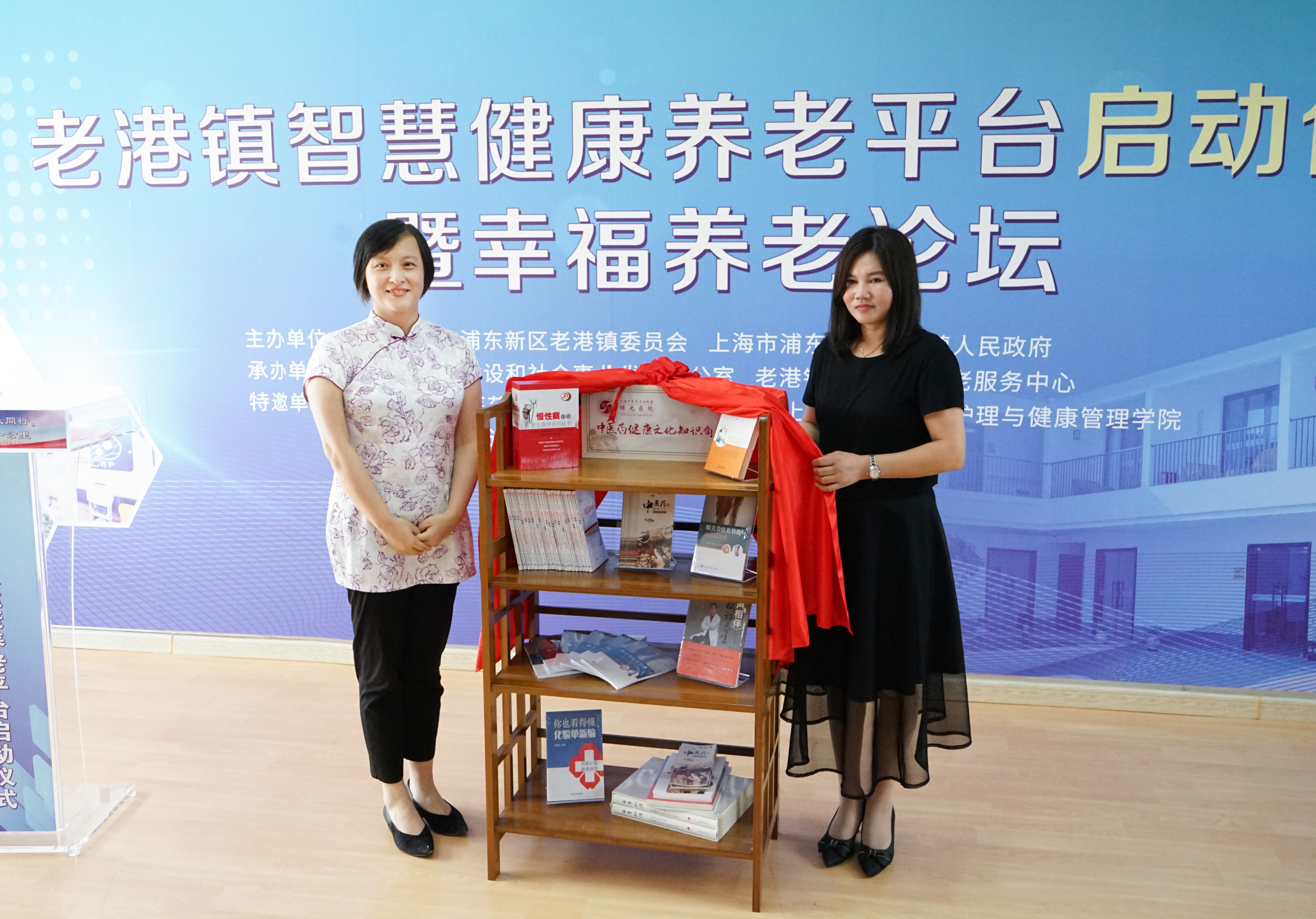 下午,在主题为“院校社联动,康养乐同行,打通农村养老最后一公里”的老港镇幸福养老论坛上,曙光医院党委副书记郝微微主题发言,并向老港镇捐赠了“曙光医院中医药健康文化知识角”,在医院和镇政府的共同推动下,中医药健康文化知识角将遍布老港镇的81个为老服务中心。
