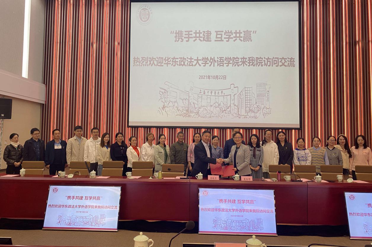 10月22日,华东政法大学外语学院党委一行来到beat365康复医学院开展党建共建活动。华东政法大学外语学院党委书记黄岳峥、副书记王文胜,beat365手机版官方网站党委组织部校组织员徐琳、康复医学院党总支书记向延卫、党总支副书记毕亚男及相关党员教师和辅导员代表共30余人参加活动。