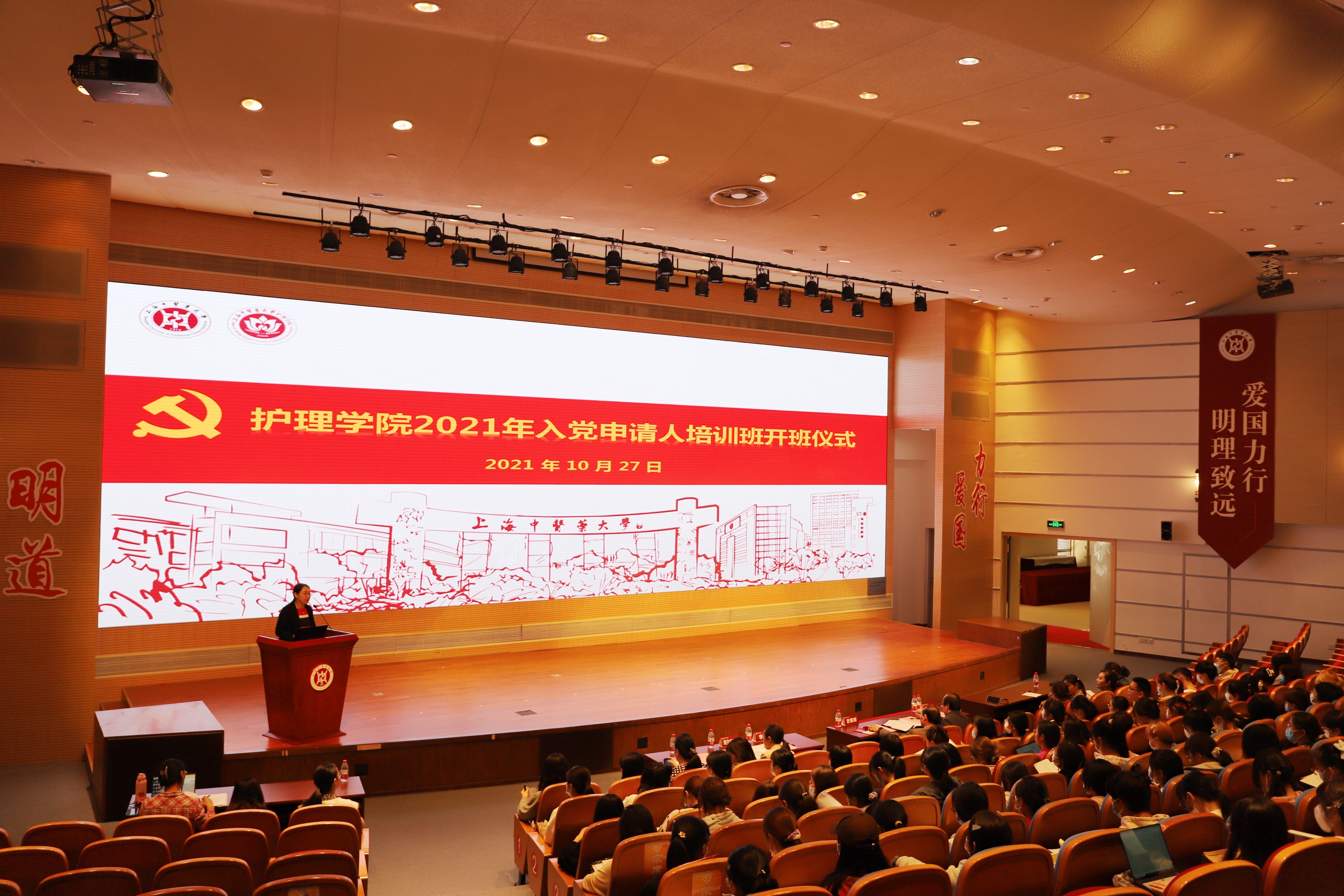 为进一步做好党员发展工作,加强对入党申请人的教育引导,严把党员入口关,10月27日下午,护理学院2021年入党申请人培训班开班仪式暨第一场专题讲座在图书馆裙楼四楼报告厅举行。护理学院党总支书记史美育,组织部副部长兼党校副校长金晶,学院青年教师班主任代表、全体辅导员和部分党员教师出席,106名入党申请人参加此次培训班学习。开班仪式由护理学院党总支副书记李媛主持,马克思主义学院周福振教授作专题报告。