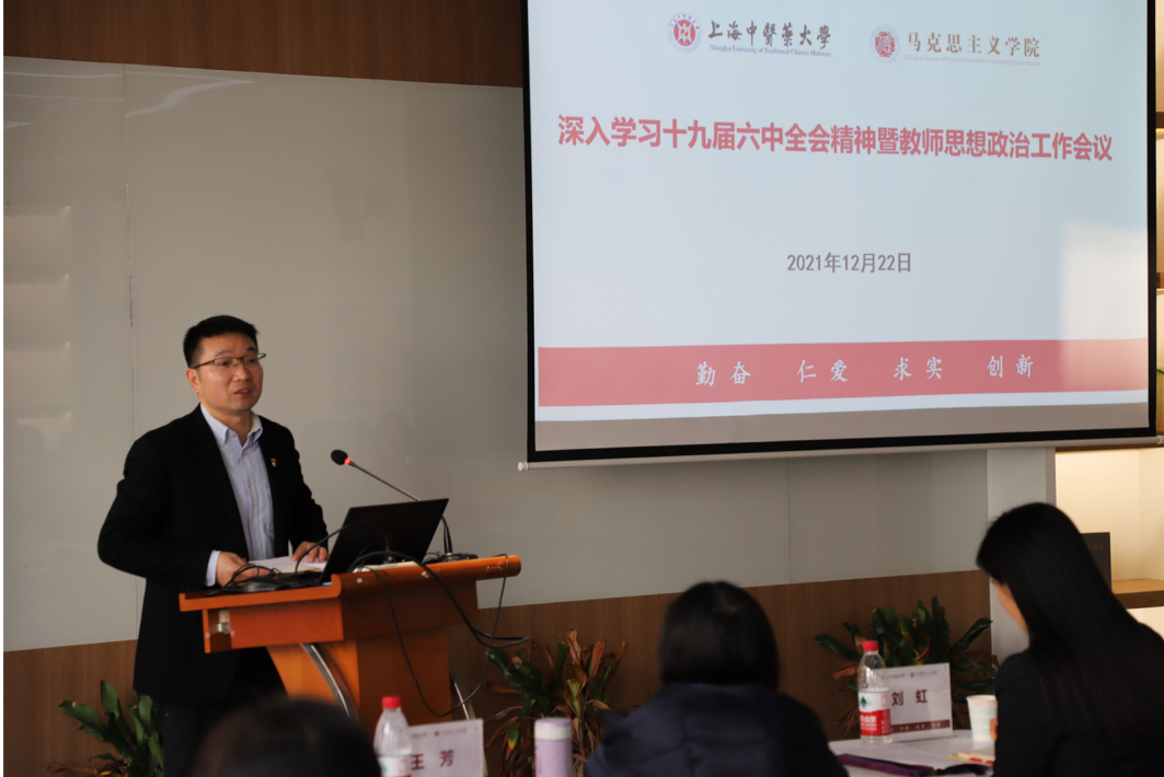 为深入学习十九届六中全会精神,贯彻党中央关于新时代高校教师思想政治工作的新部署和新要求,以及beat365教师思想政治工作会议要求,马克思主义学院于12月22日召开学习十九届六中全会精神暨教师思想政治工作会议。校党委教师工作部副部长刘虹、创新中药研究院联合党支部书记冯陈国、科技人文研究院第二党支部书记任宏丽以及马克思主义学院全体教师参加会议。