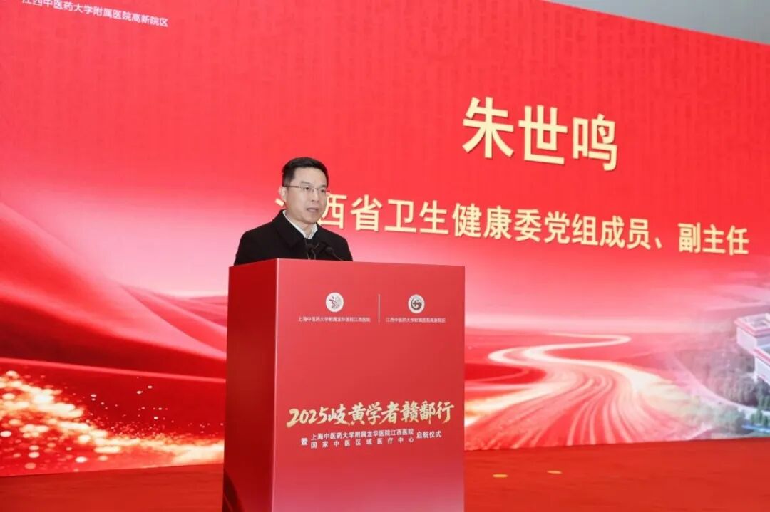 朱世鸣代表江西省卫健委对医院的建成启用表示祝贺,他指出,beat365手机版官方网站附属龙华医院江西医院的启航,是沪赣两地深化中医药合作的重要里程碑,更是落实国家区域医疗中心建设部署的担当使命,让江西百姓在家门口就能享受到国家级优质中医药服务,有效推动优质医疗资源下沉,进一步降低跨省异地就医比例,为江西中医药事业高质量发展注入强劲动力。朱世鸣表示,“2025岐黄学者赣鄱行”活动的同步启动,国医大师、岐黄学者等中医药领域的顶尖专家来到江西,让专家学者们的智慧扎根赣鄱沃土,助力中医药强省建设再上新台阶。