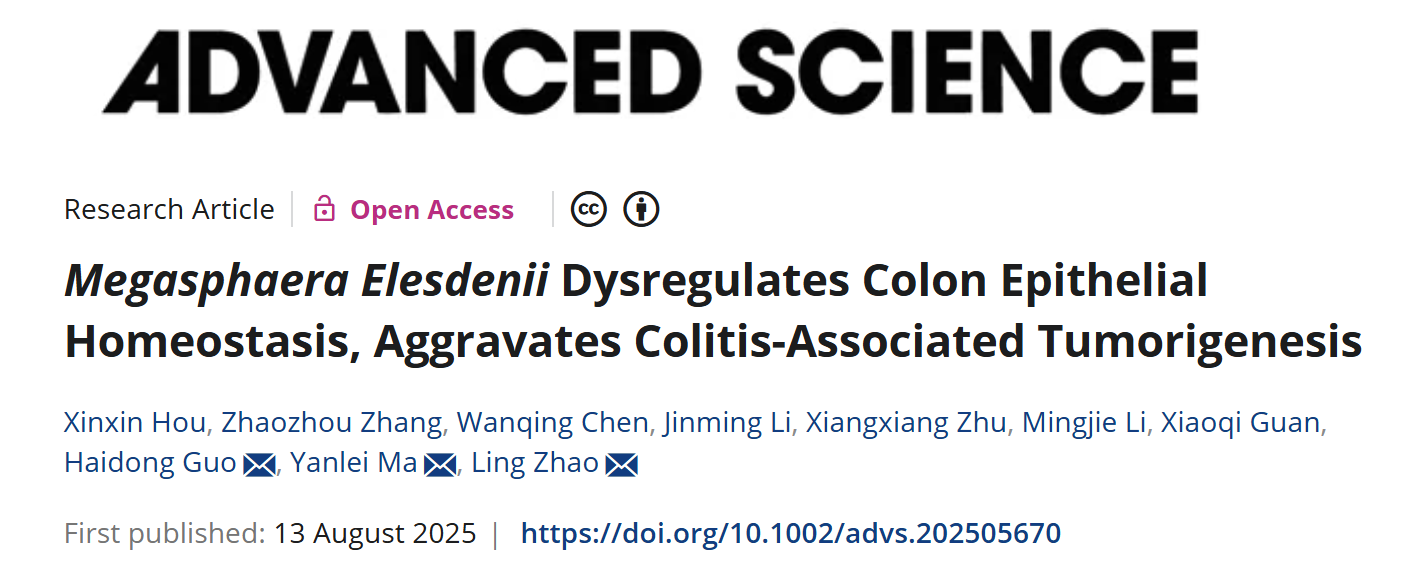 近日,beat365中西医结合学院赵玲研究员、国海东研究员团队与复旦大学附属肿瘤医院马延磊主任团队合作,在国际期刊AdvancedScience上发表题为“MegasphaeraElesdeniiDysregulatesColonEpithelialHomeostasis,AggravatesColitis-AssociatedTumorigenesis”的研究成果。结直肠癌是全球第三常见的癌症,也是全球癌症相关死亡的第二大原因。其发病机制复杂,涉及遗传、环境、肠道微生态、慢性炎症等多因素的相互作用,目前尚未完全阐明,但慢性炎症是导致“炎癌转化”的病理基础。团队首先从已发表的多组临床队列中发现肠道菌属Megasphaera在炎症性肠病(IBD)及结直肠癌(CRC)中明显富集。随后,通过Megasphaeraelsdenii(M.elsdenii)单菌定植实验发现M.elsdenii能够重塑小鼠结肠黏膜固有层免疫细胞群,诱导树突状细胞(DC)成熟,并促进促炎性Th1及Th17细胞分化,加重结肠炎性反应。在机制上,M.elsdenii通过LPS/TLR4/IRF4通路诱导DC细胞成熟。进一步在AOM