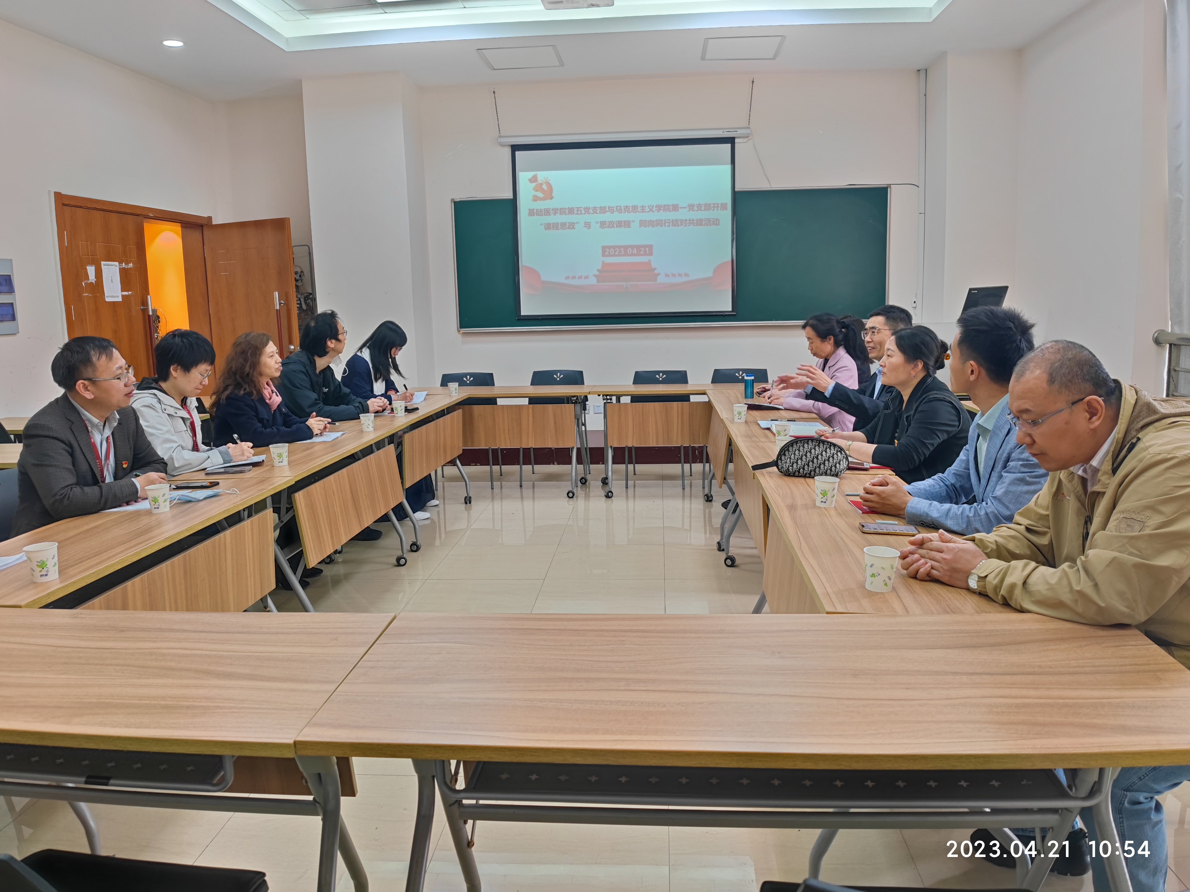 基础医学院第五党支部与马克思主义学院第一党支部开展“课程思政”与“思政课程”同向同行结对共建活动