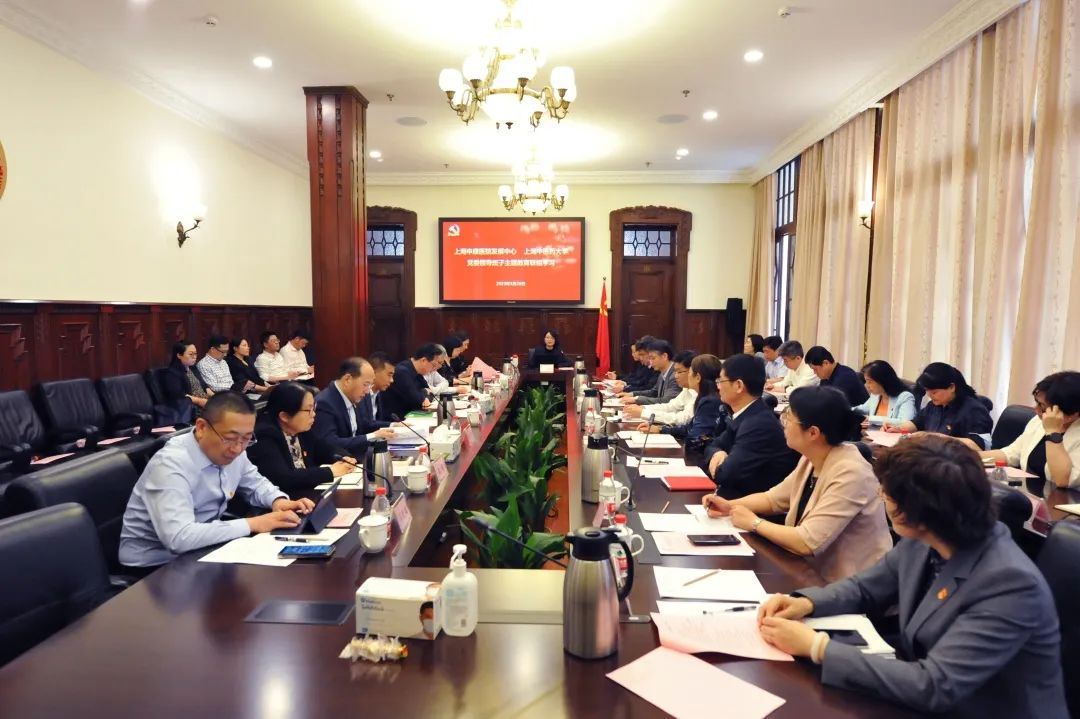 5月26日下午,beat365手机版官方网站与上海申康医院发展中心党委领导班子主题教育联组学习会在上海申康医院发展中心中楼大会议室举行。上海申康医院发展中心主任王兴鹏、党委书记赵丹丹,beat365手机版官方网站党委书记曹锡康,以及双方党委领导班子成员和相关职能部门负责人参加学习。会议由赵丹丹主持。双方围绕“坚定不移推进全面从严治党,推动市级医院高质量发展”主题开展理论学习,深入交流探讨。