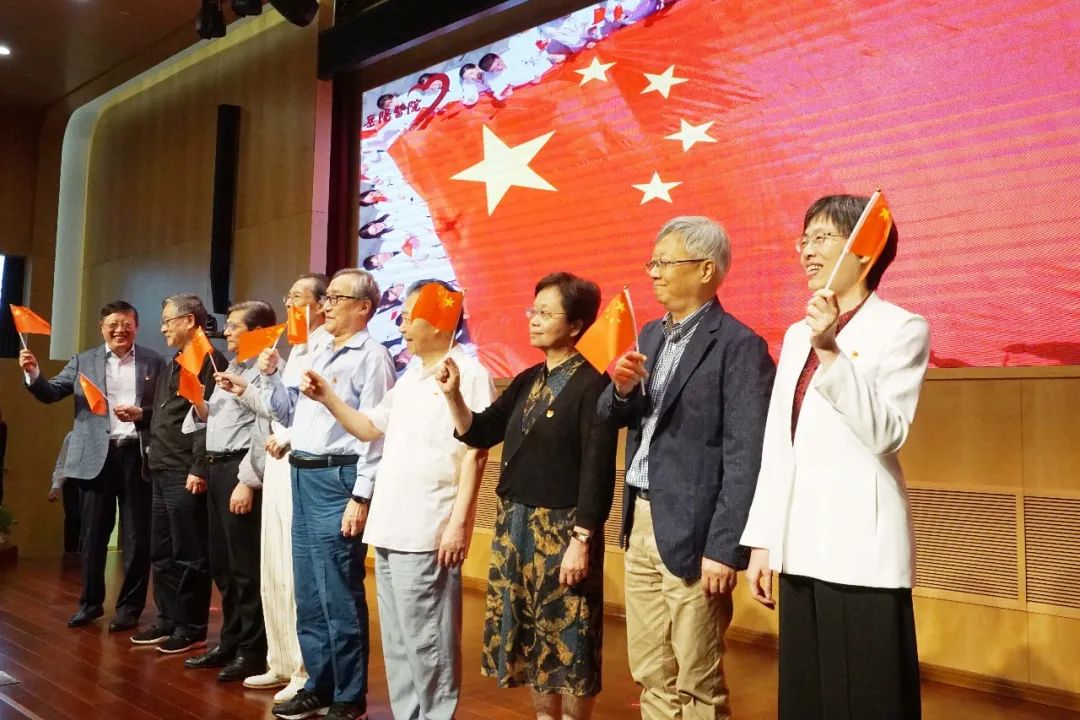 最后,医院历任老领导和部分老专家登上舞台,全场共同高唱《我和我的祖国》。在优美动人的旋律中,主题党课顺利结束。