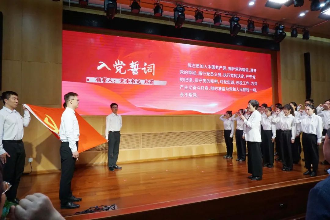 主题党课的结课部分,郑莉带领预备党员和在场的全体党员重温入党誓词。