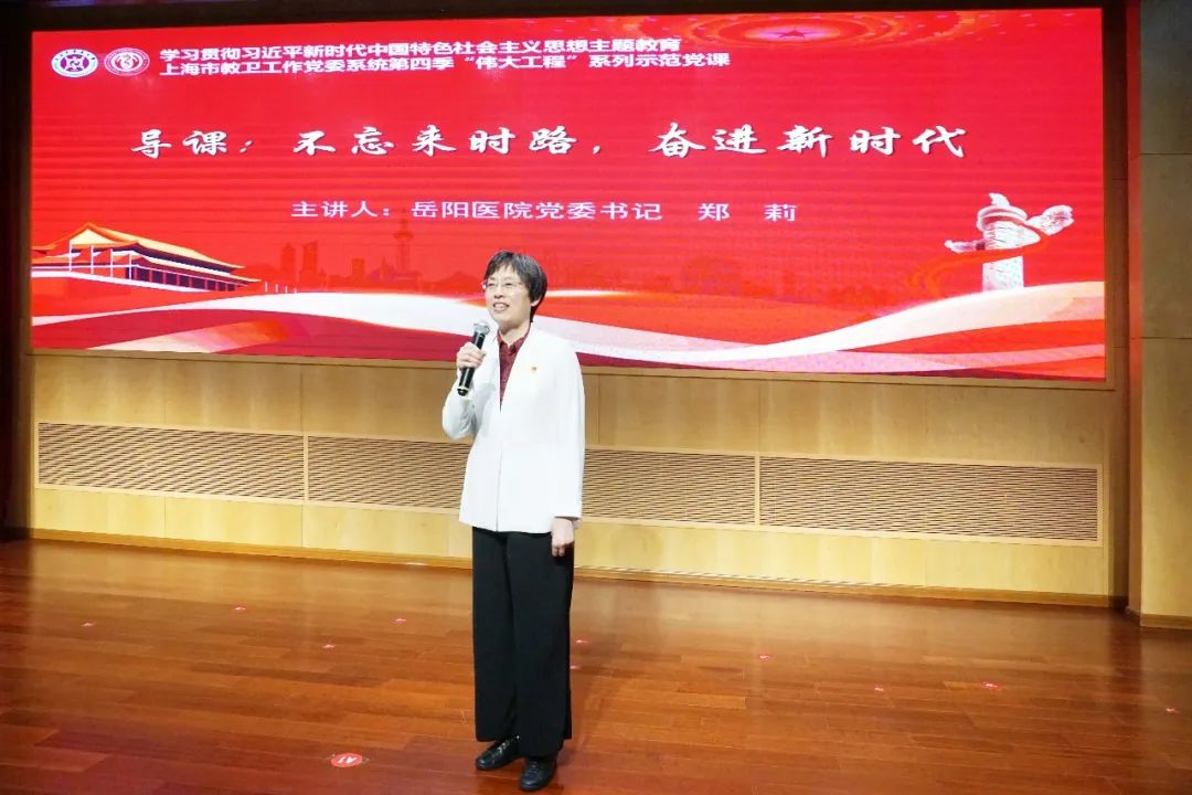 6月13日下午,上海市教卫工作党委系统第四季“伟大工程”系列示范党课之“医道初心担使命 中西合璧创辉煌”、beat365手机版官方网站主题教育读书班在beat365手机版官方网站附属岳阳中西医结合医院(以下简称“岳阳医院”)3号楼学术报告厅开讲。