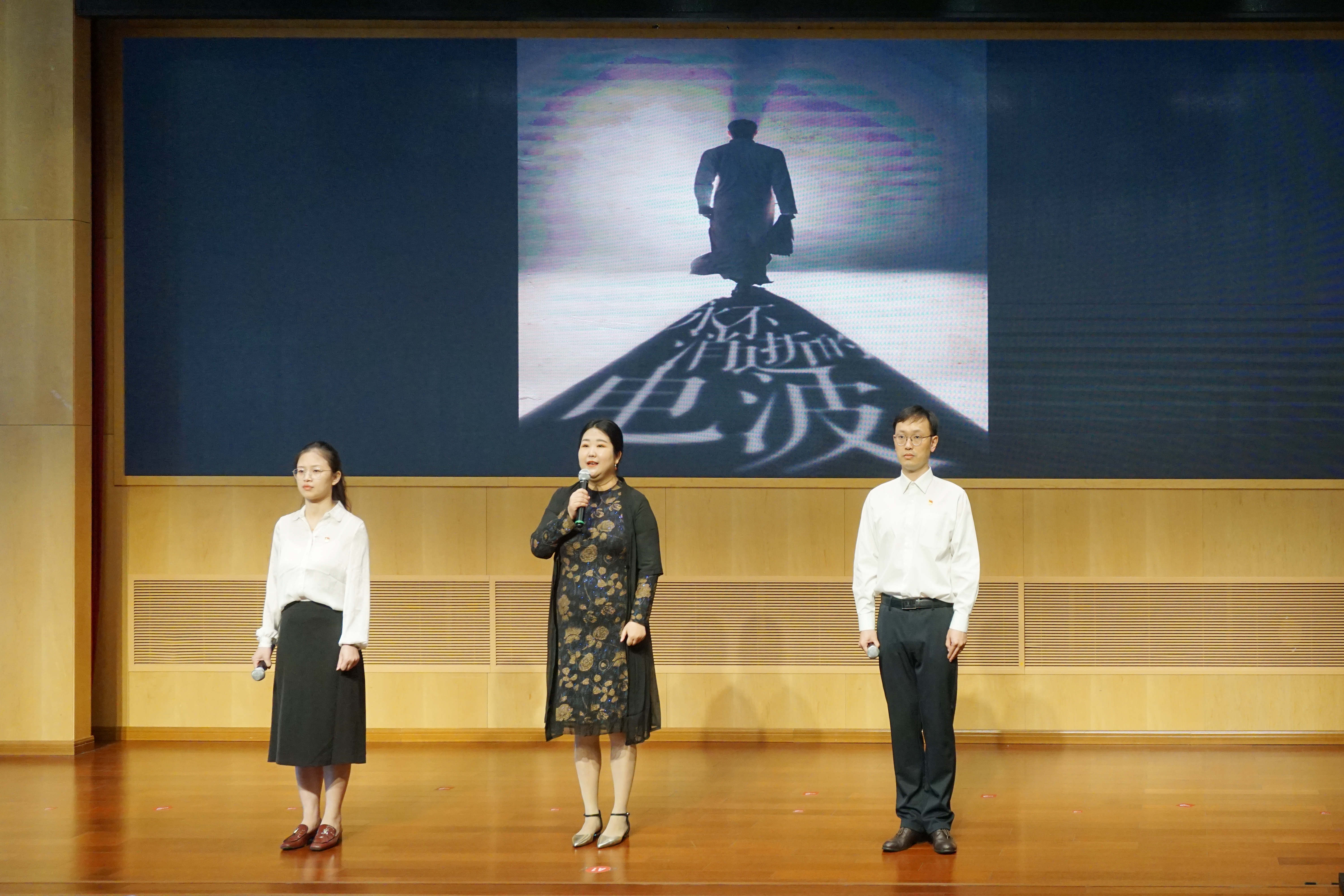 党课第一篇章为“追溯回望 积蓄伟力”,舞蹈《绣红旗》和《故事里的中国 永不消逝的电波》配音表演饱含深情,再现了革命先辈前赴后继、视死如归的感人场景。医院青年医务工作者朗诵诗歌《乘风破浪 扬帆起航》,展现了青年人心怀“国之大者”,勇敢接过新时代接力棒的使命担当。
